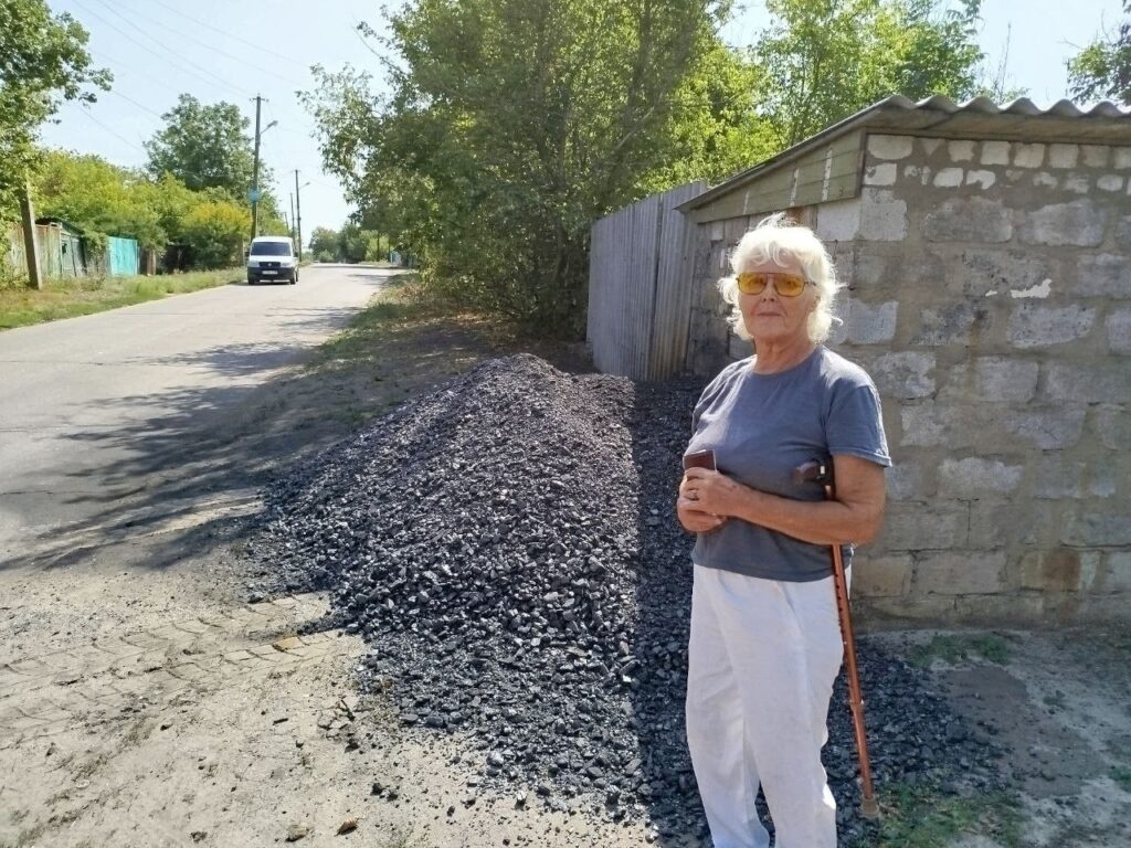 Ещё одной получательницей угля стала Светлана Викторовна из Брянки. «Из-за выработок неподалеку, дом потрескался, и зимой в нем холодно, приходится ходить в теплой одежде. А уголь привозили последний раз еще в 2017 году» – рассказывает она. Получив уголь, она выразила надежду, что эта зима окажется для нее не такой холодной, как предыдущие.