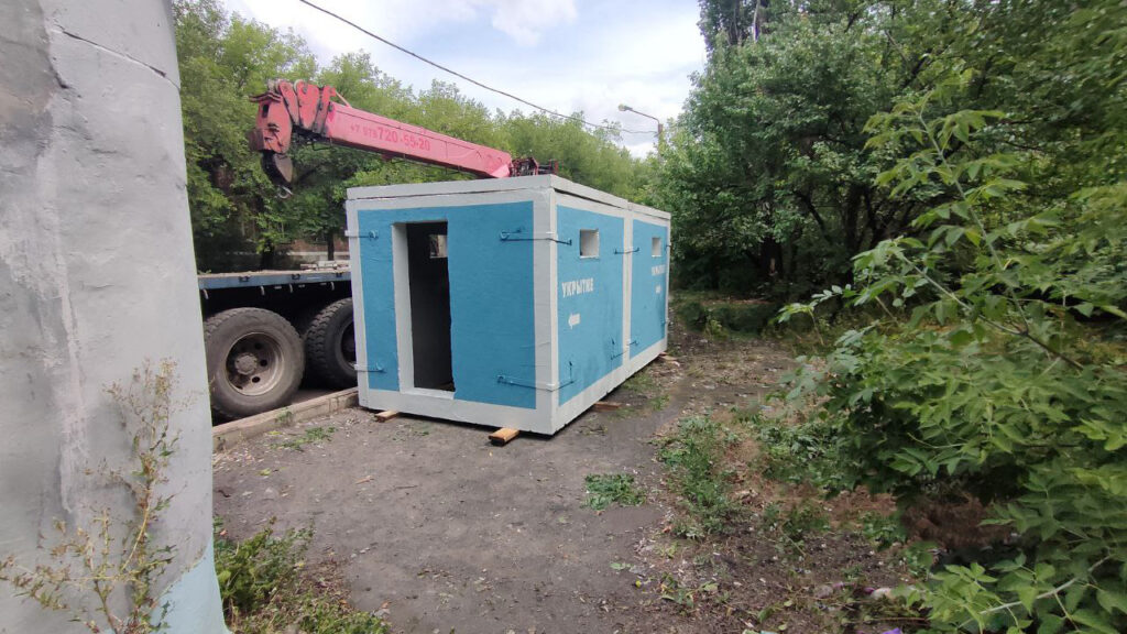 Межрегиональной общественной организацией Центром Развития Региона в Кировском районе Донецка установлены укрытия для защиты при обстрелах и дроновых атаках. Они представляют собой прямоугольные быстровозводимые типовые железобетонные конструкции. Толщина плит – 20 см, общая площадь укрытия – 8 квадратных метров. Укрытие имеет два входа с опознавательными знаками, общая вместимость до 15 человек. Безусловно, от прямого попадания снаряда такая конструкция не защитит, но позволит оперативно защититься от осколков, взрывных волн.